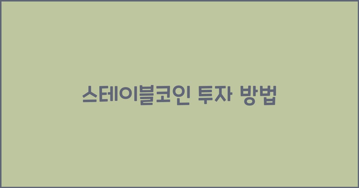 스테이블코인 투자 방법: 안정적 수익을 위한 현실적 선택