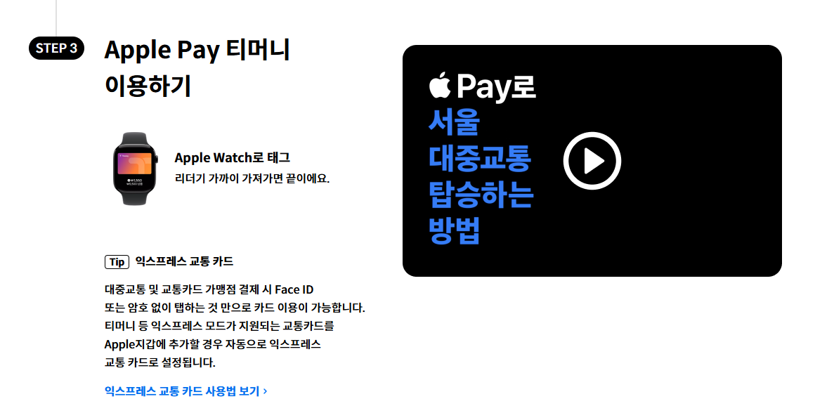 후불 교통카드나 기후동행카드, K-패스는 아직 애플페이에서 사용할 수 없으니 참고하세요!