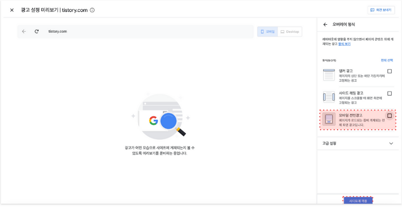 블로그마다 차이는 있겠지만, 대부분의 블로거들이 모바일 전면광고로