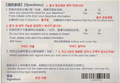 * 위 이미지는 예시이며, 실제 양식은 공항 혹은 항공기에서 제공됩니다.