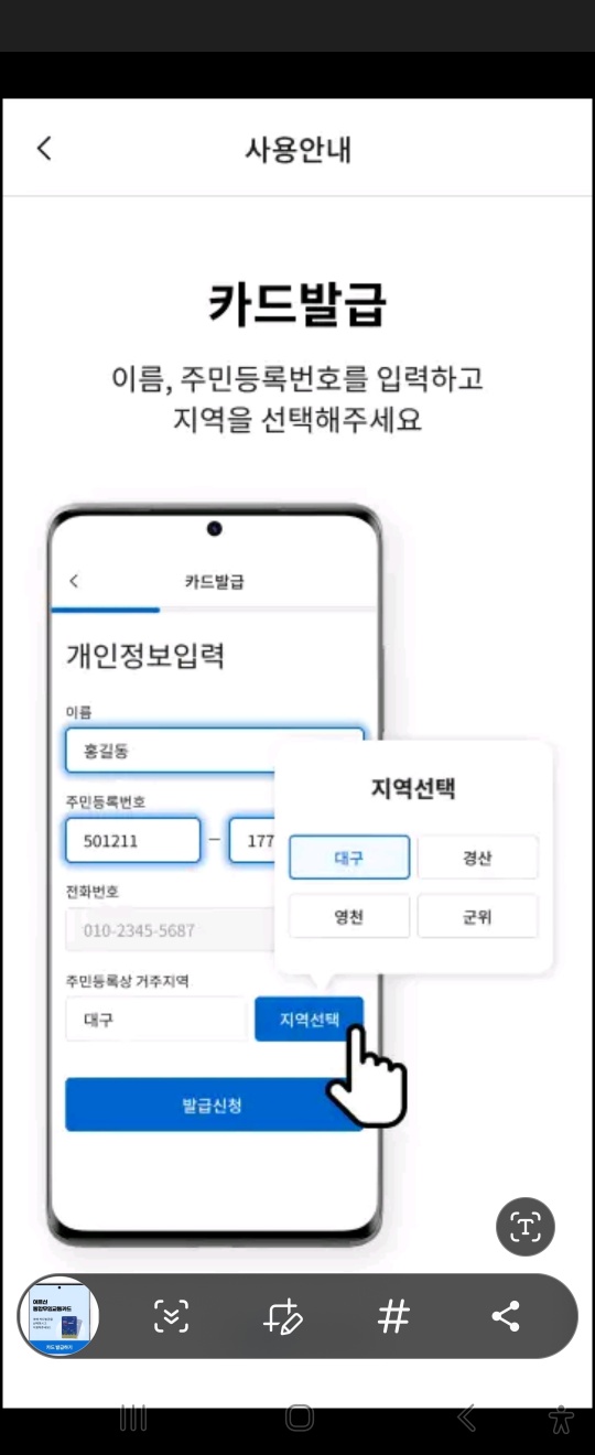 카드발급하기 클릭하시면 돼