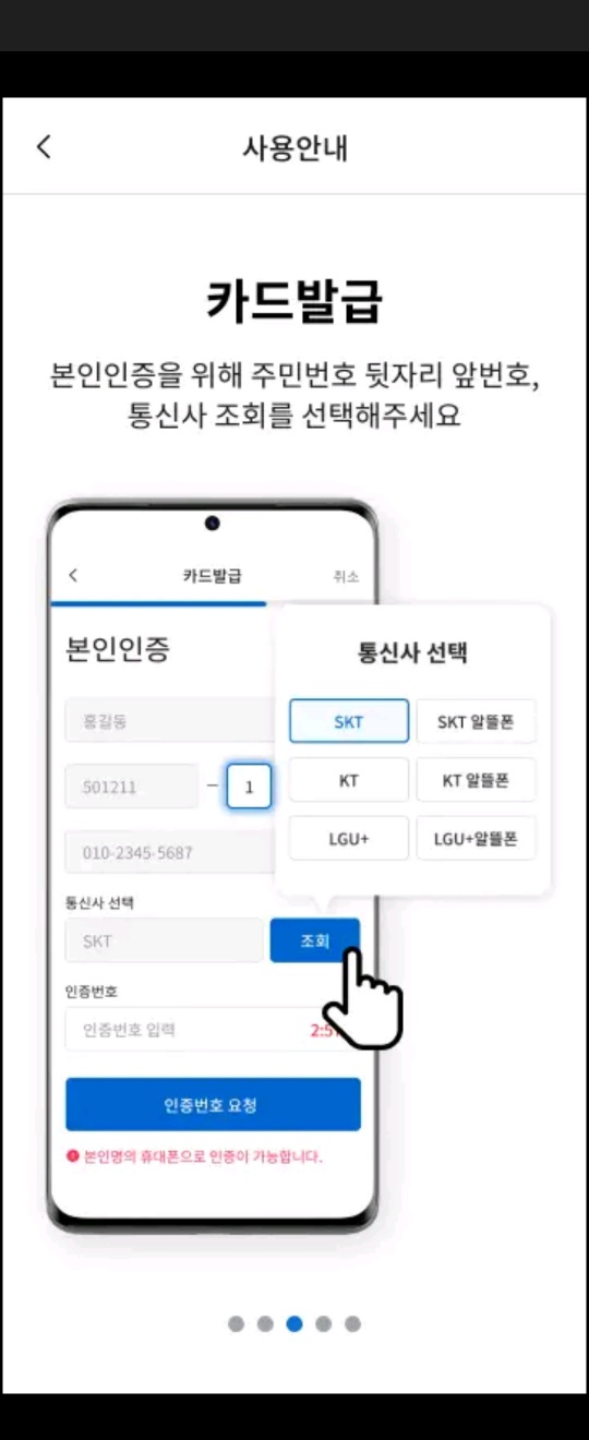 3. 본인인증을위한통신사. 선택, 조회 후인증번호요청해 주세요