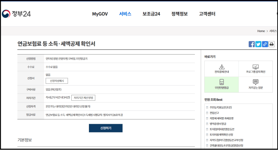 연금보험료,소득세액공제확인서발급은세무서를가거나주민센터를이용가능편하게하려면홈택스, 정부 24를통해쉽게발급후에출력할 수 있는 방법