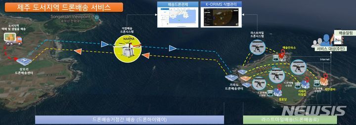 국토교통부와행정안전부,제주도특별자치도21일부터제주도에서실제비행 중인드론의위치를실시간으로확인하는드론식별시스템을시범구축했다택배가들어가지않은가파도에드론택배서비를시행한다고18일에밝혔습니다