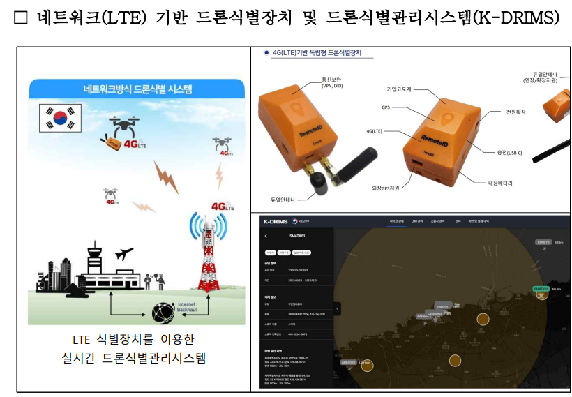 드론식별관리시스템운영체계도는네트워크(lte) 기반으로드론식별장치, 드론식별관리시스템도입합니다