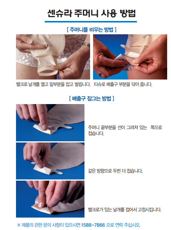 센슈라 주머니사용방법, 비우고법. 배출구, 잠그는 법