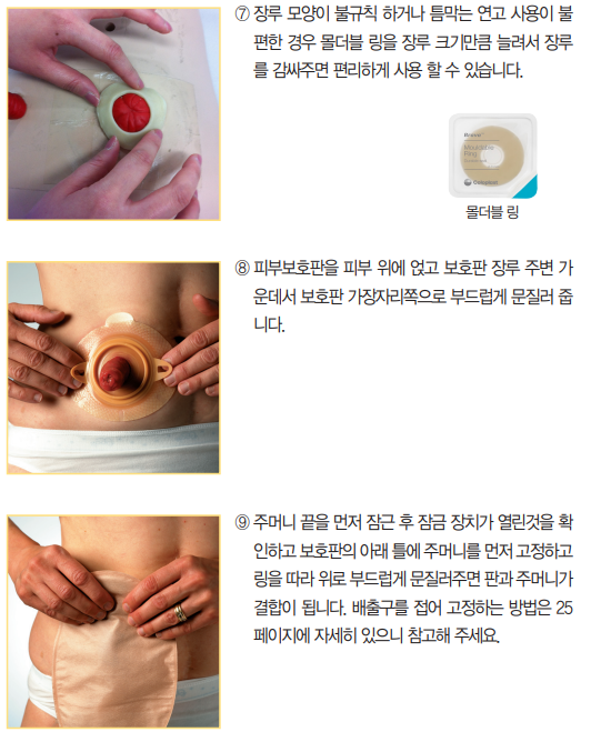 7. 기자우 모양이 불규칙하거나 틈 막는 연고 사용이 불편한 경우 몰더블 링을 장루 크기만큼 늘려서 장루