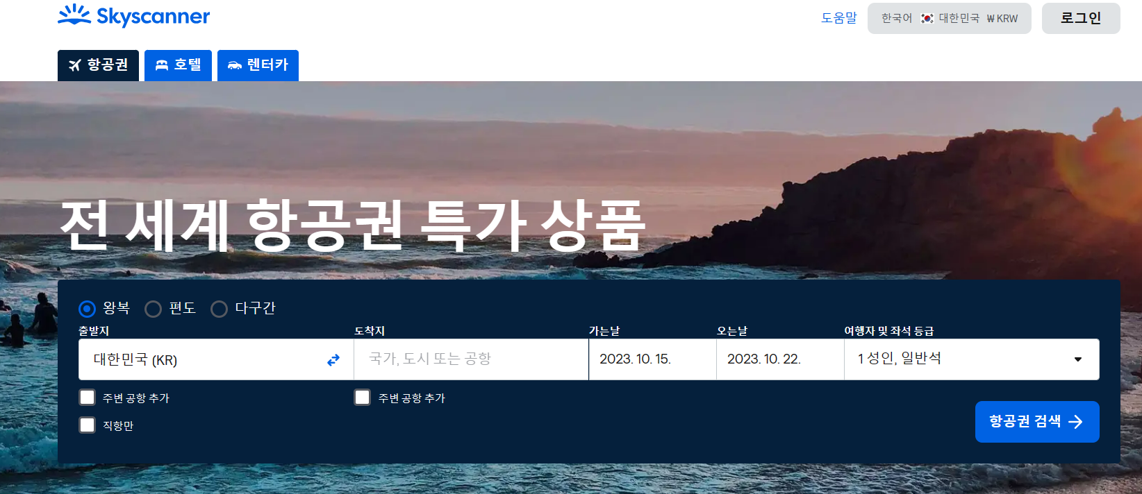 스카이스캐너항공권검색, 호텔, 렌터카항공권 중에최대이용할 정도대표적인사이트이죠