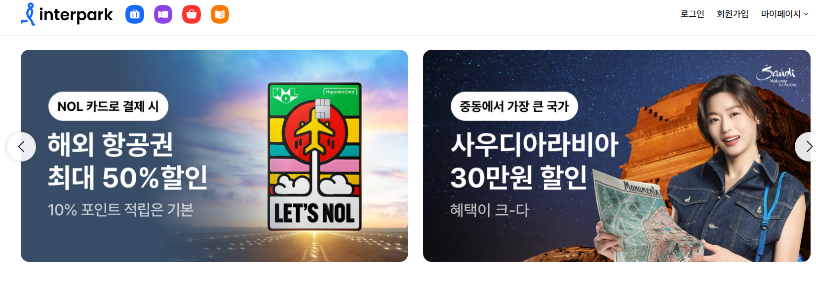 인터파크도국내외항공권, 숙수여행최저가예약, 뮤지컬, 콘서트, 연극티겟모든 걸한 번에예약을할 수 있는 게가능얼마나있을까요그리고항공권최저가보상제를실시하기도합니다