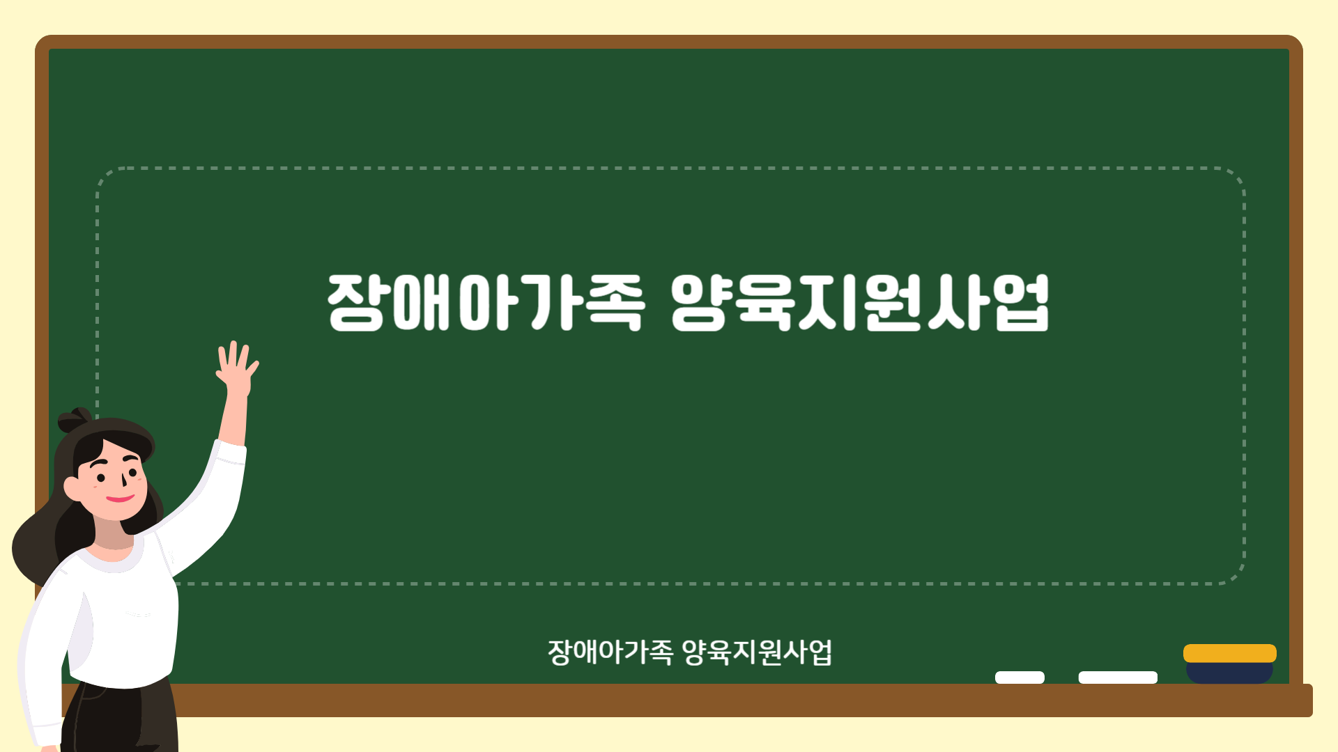 장애아동의가족이마음편하게쉬고사회활동을할수있도록도와줍니다.장애아동의가족이마음편하게쉬고,사회활동을할수있도록도와주는사업입니다.가족의부담을줄여주기위해키우는부모나발달장애인의가족에게필요한정보와교육을제공합니다