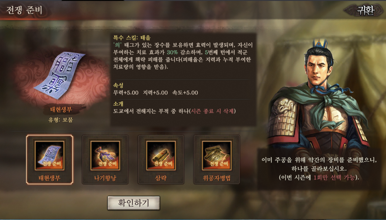 3. 사용조건은. 각장비는 유형별로 장수에게 버프를 제공되며. 진영조합의 도움을 줍니다