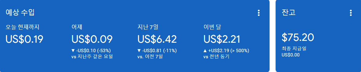 물론저는아직한달에100만 원벌어본 적도없습니다아직위에수익 보시면아직 100달러도미치지 못합니다즉본인이일하는 곳에서반드시일해야만수익생기죠.단블로그는당장의보이는수익은없고미미하지만나중에생기는 경우도있습니다그리고내공이쌓이고방법을안다면수익은커지지마련입니다