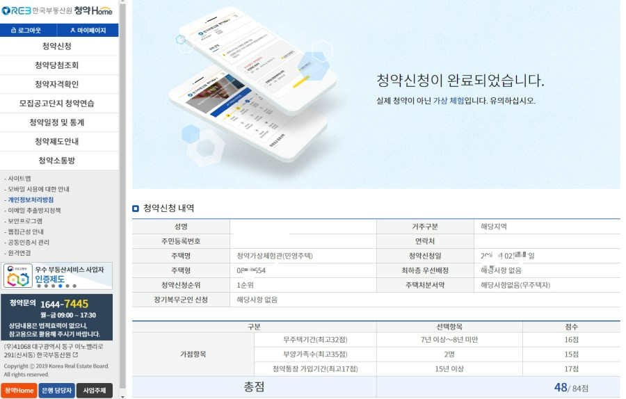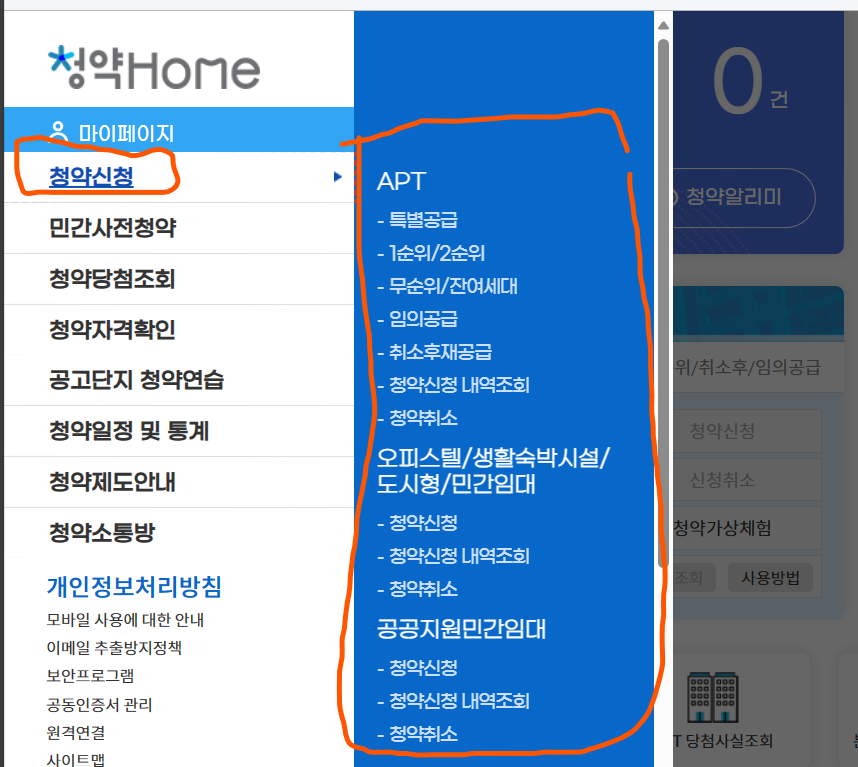 한국부동산원 청약 HOME홈페이지= 청약신청 =APT=청약취소
