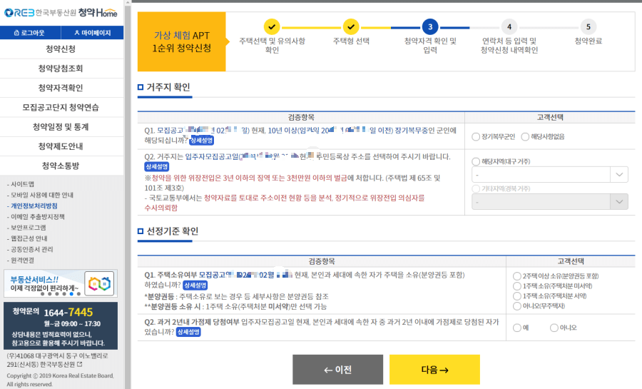 이용방법 한국부동산원 청약 HOME 홈페이지 = 청약신청=APT=청약신청