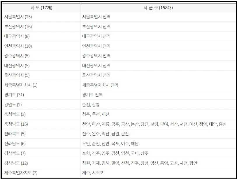 알뜰교통카드사업은전국적으로써158개시, 군, 구에서실시합니다