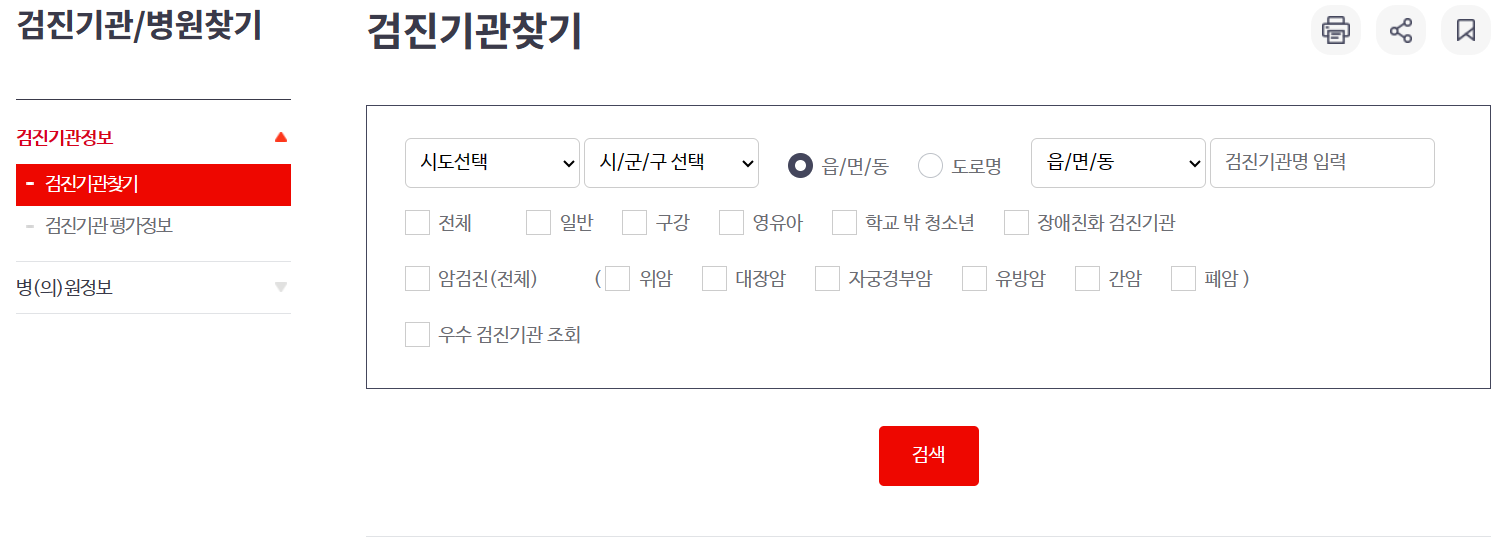 다음과 같이 건강검진 기관을 찾으려면 검기관 찾기 선택해서 본인이 살고 계시는 곳에 선택하시고 검색하기 누르시면 됩니다