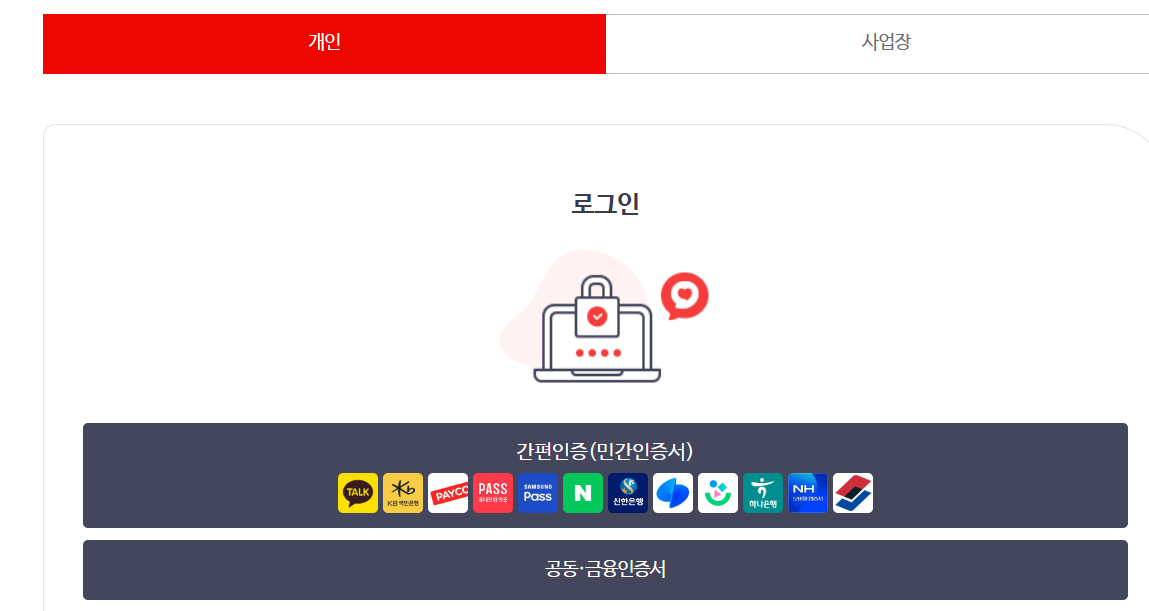 보험공단홈페이지접속하려면아래와같이개인인증, 공동인증서화면에서개인 맞는선택 해서인증을해야 합니다