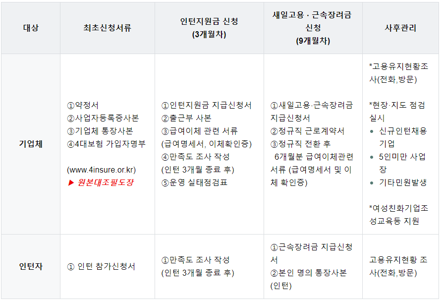 3. 인턴종료 후에상용직, 정규직전환일로부터6개월이상교용유지 시에새일고용장려금지급합니다(기업은80만 원)
