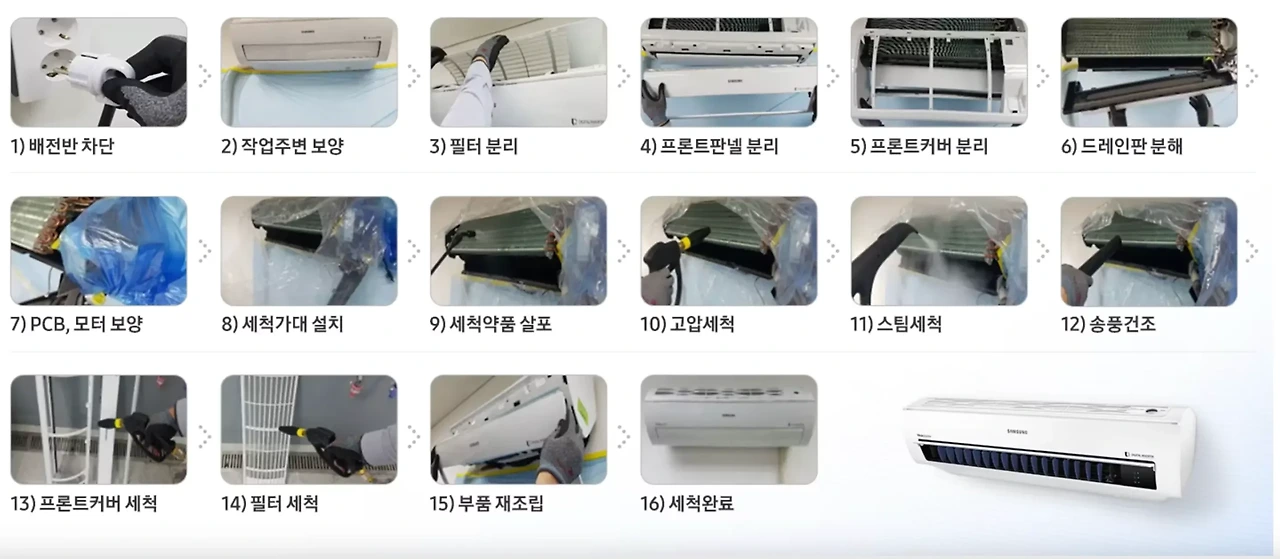 에어컨청소는에어컨의효율적인작동과실내공기질개선을위해필수적인과정입니다.정기적인청소주기를지키고,필요시전문청소업체의도움을받아에어컨을청결하게유지하세요.