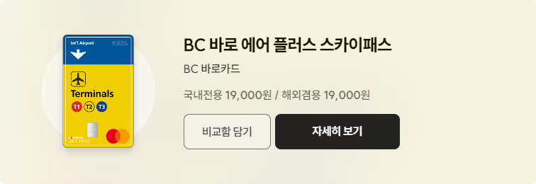 BC바로 에어 플러스 스카이패스 카드, 마일리지 적립으로 추가 혜택!