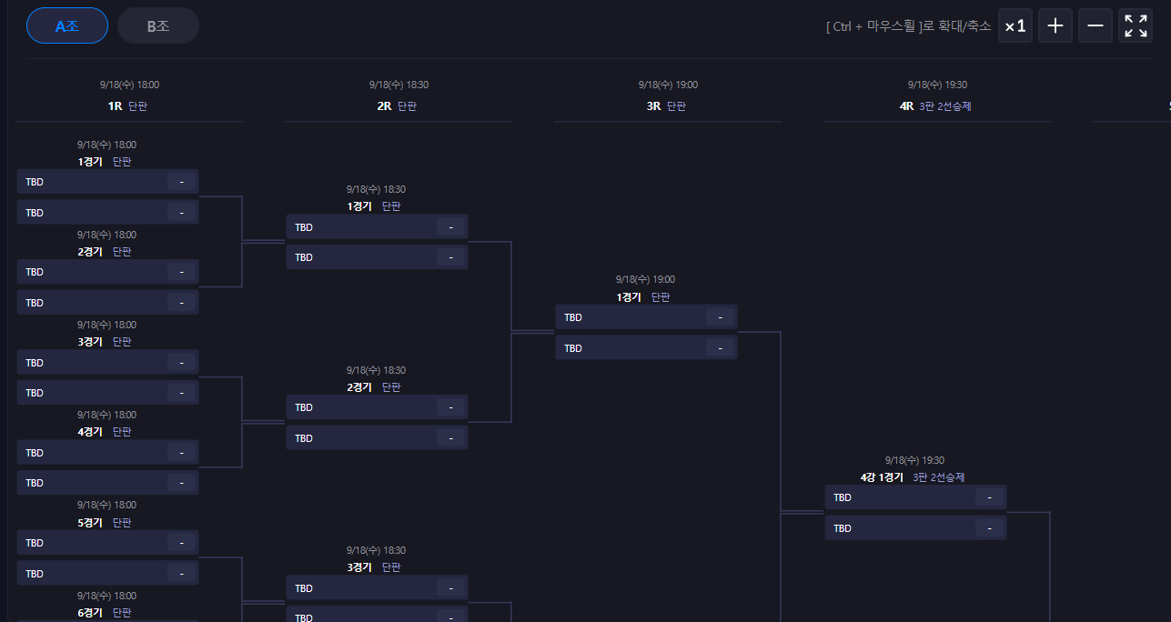 총64개팀2개조로진행이면.싱글엘리미네이션방식입니다