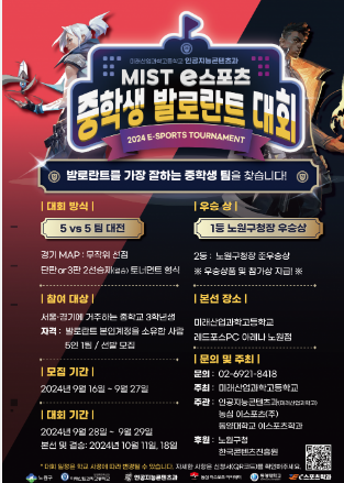 MISTE스포츠중학생발로란트대회:최강의중학생팀을찾습니다!