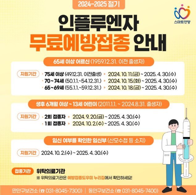 안녕하세요! 이번 블로그 포스트에서는 2024-2025 절기 인플루엔자(독감) 무료접종에 대해 자세히 안내해 드리겠습니다. 독감 예방접종은 건강을 지키는 중요한 방법이니, 꼭 확인해 보세요.