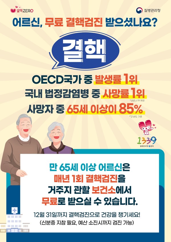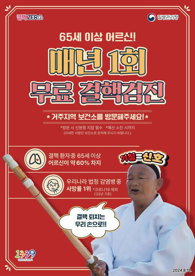 결핵은 예방이 가능한 질병이며. 정기적인 검진과 건강한 생활습관을 통해 결핵으로부터 자신을 보호할 수 있습니다. 또한 65세 이상의 어르신들은 매년 1회 무료 결핵검진을 통해 건강을 지키는 것이 중요합니다.