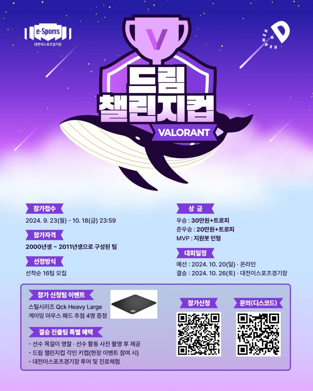 이제 당신의 꿈을 실현할 시간입니다. 프로게이머의 첫걸음을 발로란트드림챌린지컵에서 시작해 보세요! 게임의 주인공은 바로 당신일지도 모릅니다. 빠른 신청과 도전을 기대합니다!