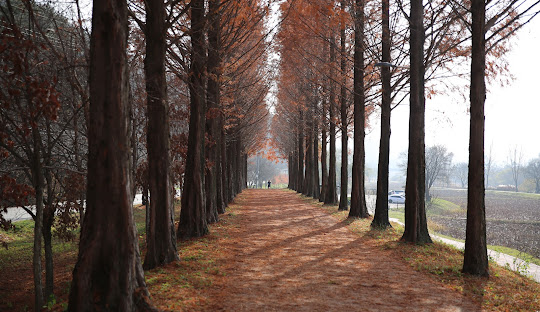 또한산책로양쪽에늘어서있는메타세쿼이아나무도운치있습니다.쭉쭉뻗어있는메타세쿼이아길중간중간에정자와벤치가있으며, 쉬엄쉬엄걷기도, 벤치에 쉬어가며걸어갈 수 있는 길입니다가을이면푸른하늘과붉은숲길이대조하여아름다움을펼쳐집니다