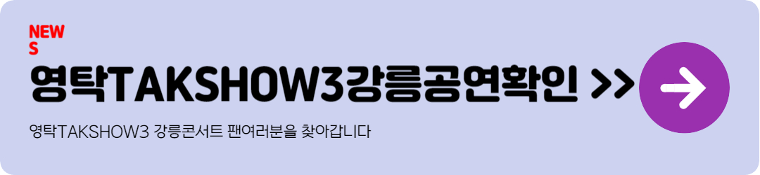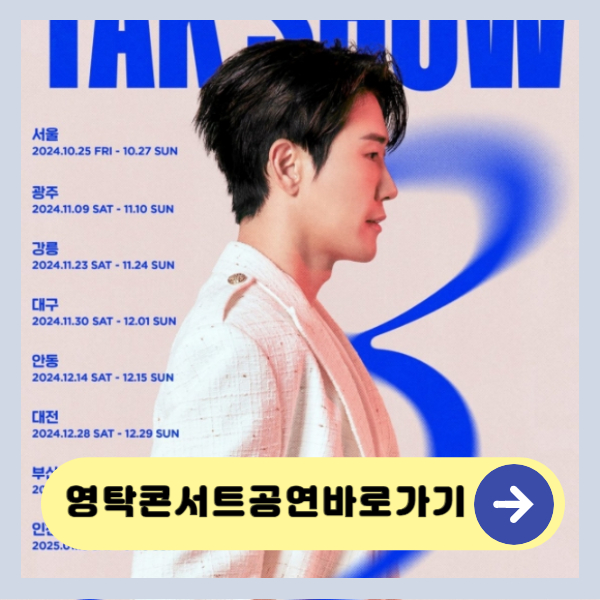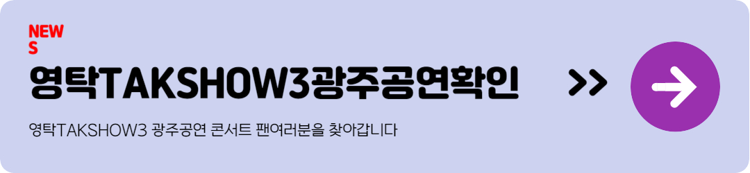| 2024 영탁 단독 콘서트 “TAK SHOW3” - 광주 공연 예매 정보 및 꿀팁 (18) | 2024.10.06 |