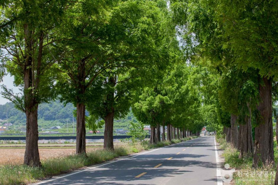 죽동마을의메타세쿼이아가로수길은그자체로도아름다움을자랑합니다.길양쪽으로늘어선메타세쿼이아나무들은하늘을가리며자연의그늘을만들어줍니다.이곳은사진촬영을즐기는사람들에게도인기가많으며,특히연인들이나가족단위방문객들에게사랑받는장소입니다.