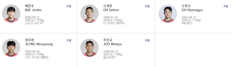 - FW: 오세훈, 오현규, 주민규