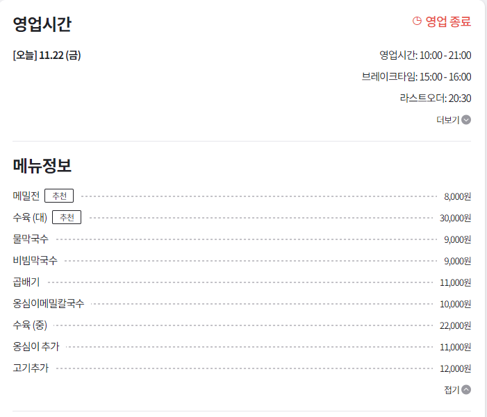특징: 강원도의 전통 음식인 막국수와 수육이 주 메뉴로, 신선한 메밀로 만든 음식이 일품입니다.