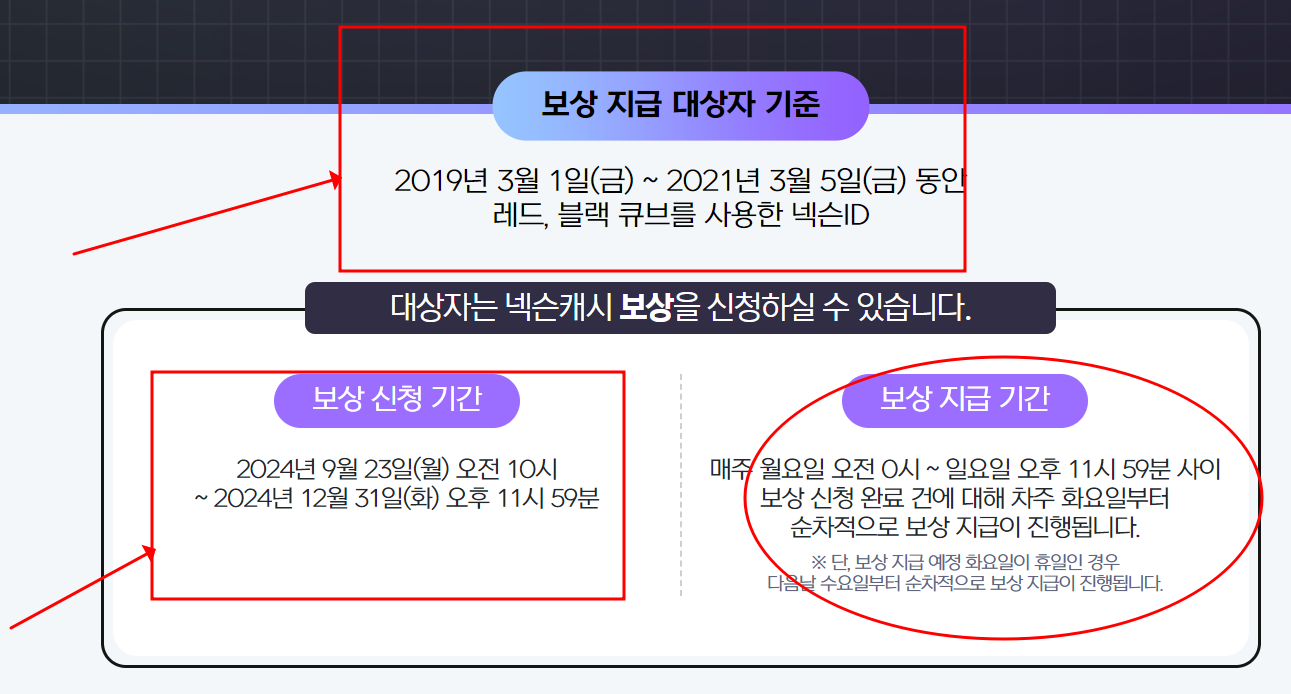 메이플스토리는 2019년 3월부터 2021년 3월까지 레드 큐브와 블랙 큐브를 사용한 유저들에게 환급금을 지급하고 있습니다. 과거에 큐브를 구매해 사용한 기록이 있다면 이번 보상 신청을 통해 사용 금액의 일부를 넥슨캐시로 돌려받을 수 있는데요. 넥슨캐시뿐만 아니라, 현금 환불도 가능하며 게임 내 추가 보상까지 받을 수 있으니 꼭 확인해 보세요.