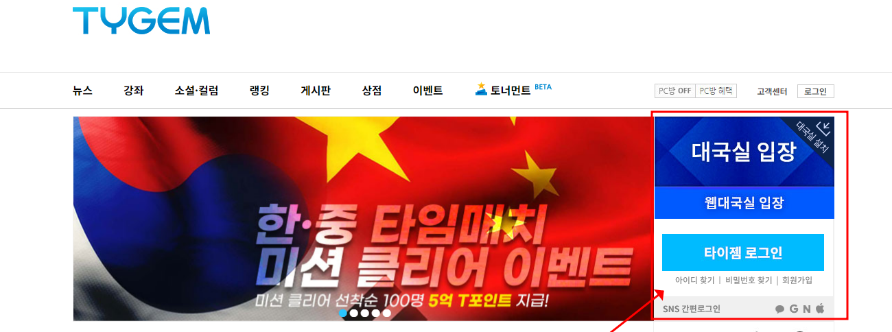 설치를 완료했다면, 이제 로그인을 통해 타이젬을 시작할 차례입니다.