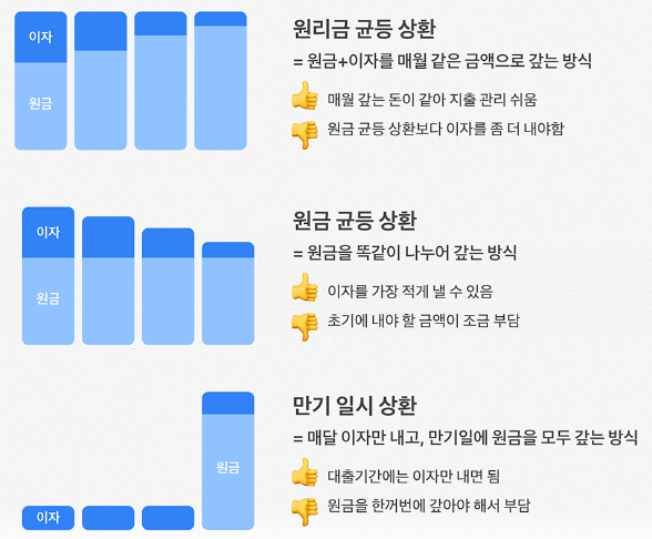 오늘포스팅은원금균등상환, 원리금균등상환, 만기일시상환장단점, 총정리우리가살면서대출을받을 때마다고민하는 부분이 대출금상환방식 따라서어떤 것이있는지 어떤 방식을선택해야유리한