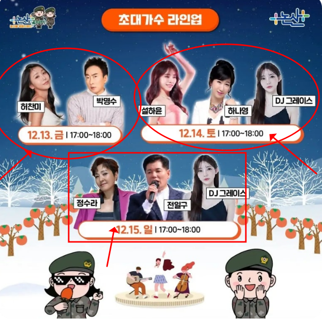 - 12월 13일(금): 허찬미, 박명수, 논산시립합창단