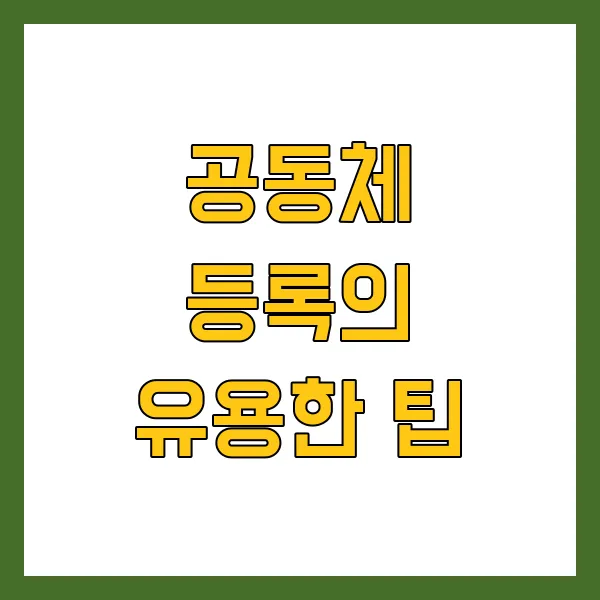 이렇게 철저하게 준비하고 확인하는 절차만으로도 공동체 등록은 보다 안전하고 합리적으로 진행될 수 있습니다. 더 다양한 방법이 있을 수 있으나, 이와 같은 유용한 팁을 통해 계획하고 준비한다면 높은 만족도를 얻을 수 있을 것입니다. 💪