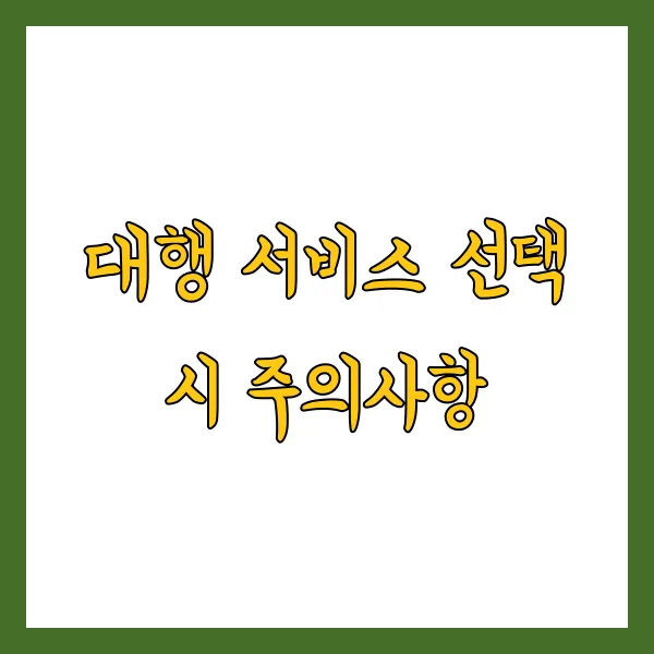 대행 서비스를 선택할 때 위와 같은 요소들을 꼼꼼하게 검토하시면, 효율적이고 신뢰할 수 있는 선택 을 하실 수 있습니다. 명의 이전 절차를 더 이상 스트레스 없이 진행할 수 있을 것입니다! 😊