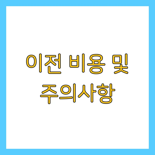 이외에도, 이전 과정에서 중개업체를 이용할 경우 수수료가 발생할 수 있습니다. 이는 보통 5-10만 원 정도로 중개업체마다 차이가 있으며, 부가적인 서비스에 따라 추가 비용이 발생할 수 있습니다 .