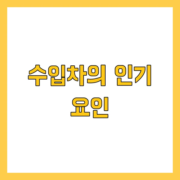 수입차는 현대인의 삶에 깊숙이 자리 잡은 필수적인 이동수단 이자 자동차 문화의 한 축 을 차지하고 있습니다. 그 인기는 고급스러운 디자인과 뛰어난 성능, 혁신적인 기술 도입 등 여러 요인에 의해 커지고 있습니다. 그러나 수입차 구매는 단순히 멋진 차를 소유하는 것 이상의 복잡한 결정을 요구합니다. 성능, 유지 비용, 브랜드 신뢰도 등 많은 요소를 고려해야 하므로 신중한 접근 이 필요합니다. 본 글에서는 수입차의 인기 요인 과 구매 시 고려해야 할 사항, 그리고 유지 및 관리 팁을 통해 성공적인 수입차 소유 경험 을 제공하고자 합니다. 이는 변화하는 시장 환경 속에서도 지속적으로 가치를 발휘할 수 있는 정보를 제공합니다.