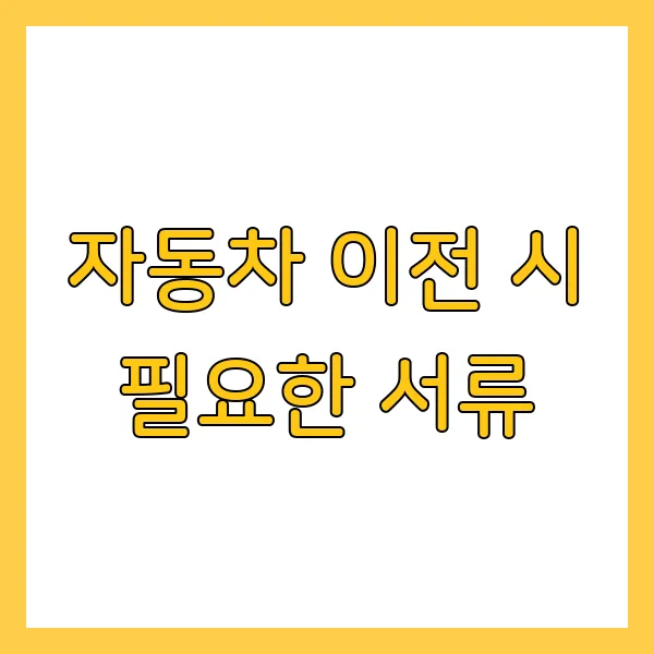 자동차 이전 시 필요한 주요 서류에는 양도증명서, 차량 등록증, 본인 확인 서류(주민등록증, 운전면허증 등), 구매 계약서 등이 있습니다. 이전을 위한 방문을 계획하고 계시다면, 반드시 모든 서류를 미리 준비 해 두셔야 불필요한 추가 방문을 피할 수 있습니다. 경우에 따라 보험 증권 등 추가 서류가 필요할 수 있으므로, 관련 기관에 미리 문의하는 것이 추천됩니다.