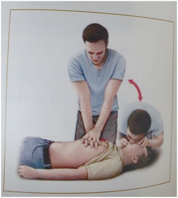 3. 가슴 압박 후 인공호흡으로 넘어가는 과정에서 환자의 맥박이 만져지는지 확인하지 말고 즉시 인공호흡을 합니다
