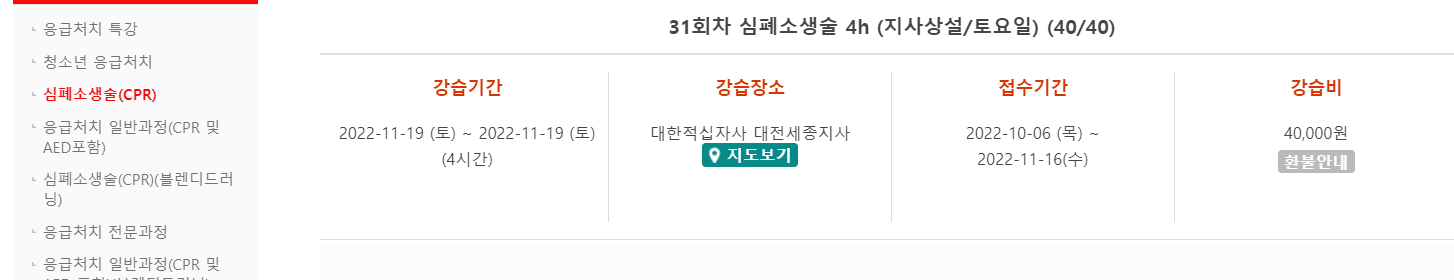 각지역을선택하셔서신청 가능한심폐소생술과정을신청하시면 됩니다