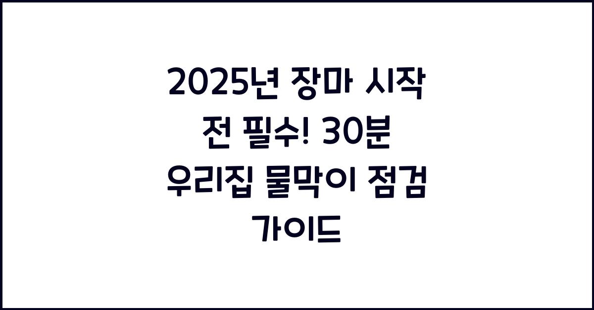 장마는 단순히 불편을 넘어 생활 안전에 직결되는 중요한 문제입니다. 사전에 준비하고 점검한다면 큰 피해를 막을 수 있습니다. 이번 장마철, 여러분의 소중한 공간이 안전하길 바라며 위의 점검 가이드를 적극 활용해 보세요.