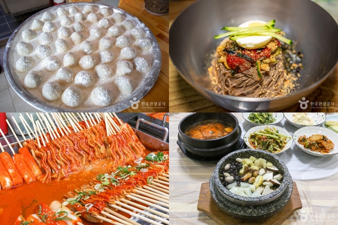제천 가스트로 투어(A) 코스는 찹쌀떡시작해서하얀 민들레 비빔밥, 막국수, 샌드위치, 빨간 어묵, 순서로 맛볼 수 있는 코스
