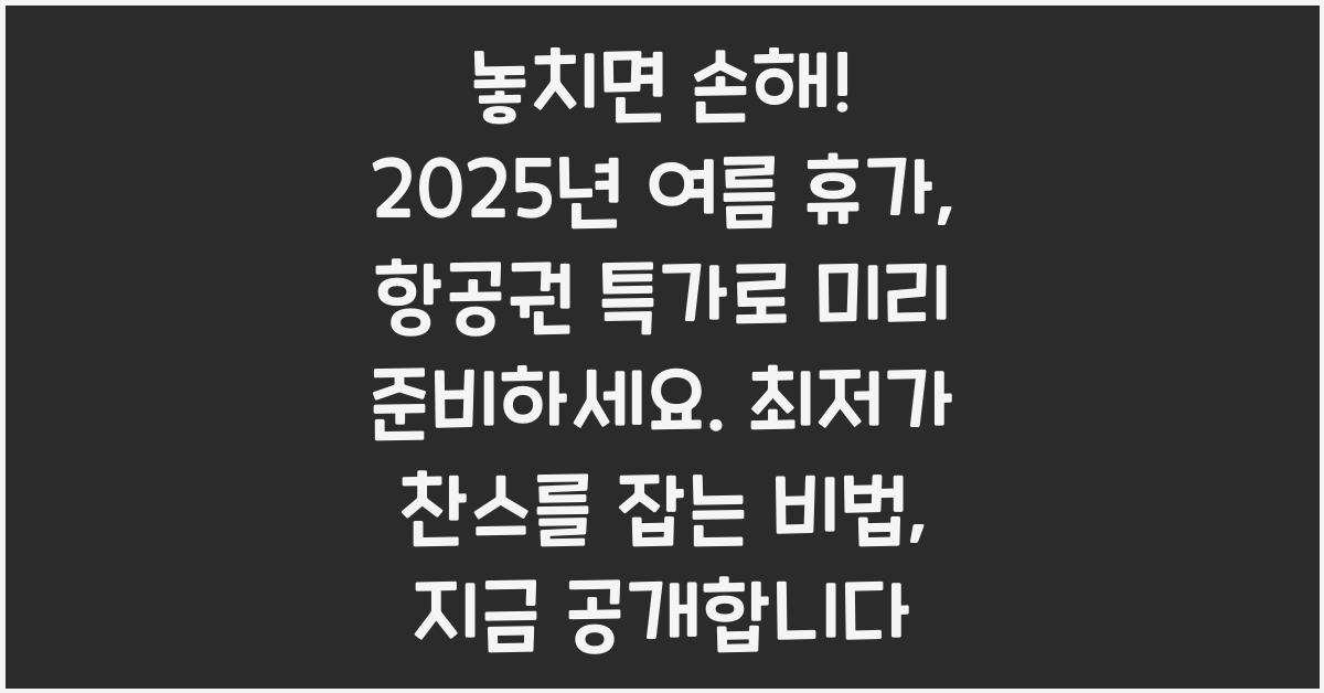 놓치면 손해! 2025년 여름 휴가, 항공권 특가로 미리 준비하세요. 최저가 찬스를 잡는 비법, 지금 공개합니다.