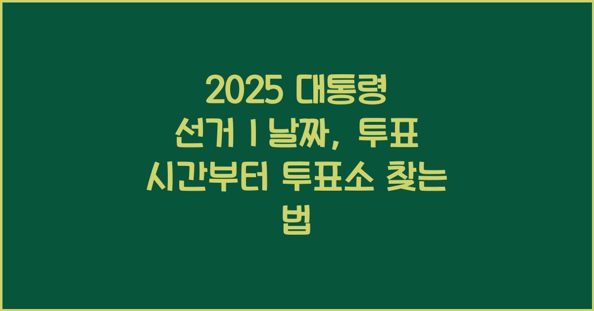 2025 대통령 선거ㅣ날짜, 투표 시간부터 투표소 찾는 법까지
