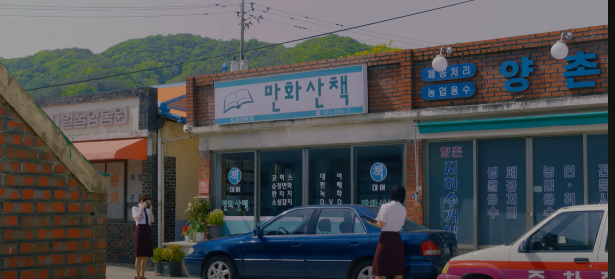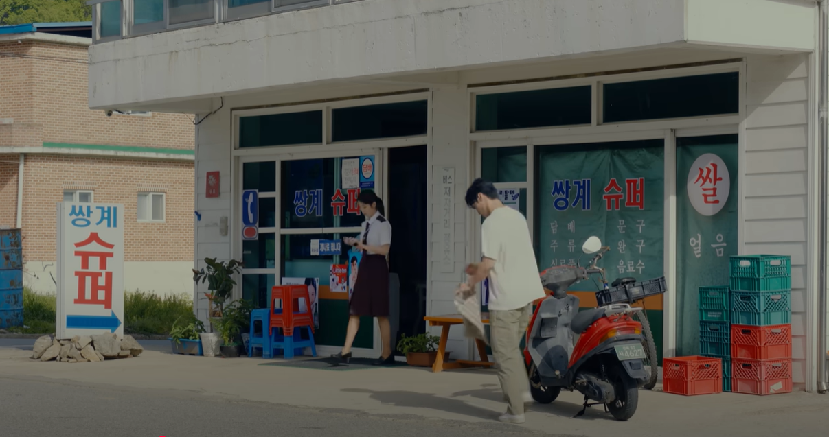 자전거를 타고 슈퍼 앞 벤치에 앉는 장면은 중산리에 있는 ‘쌍계슈퍼’에서 촬영되었습니다.